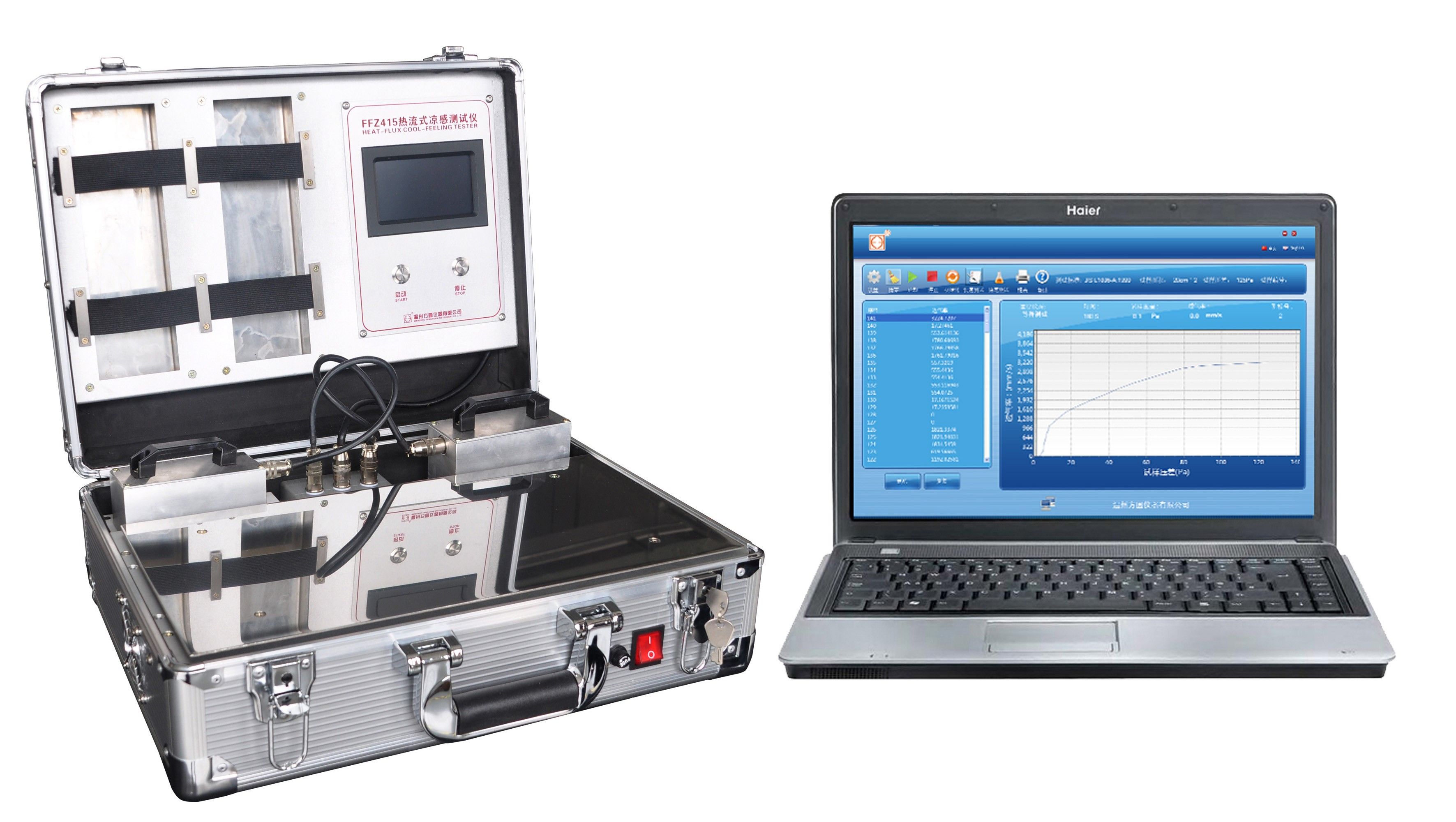 涼感制品越來越多,其質量檢測刻不容緩。我公司根據CN201510574661.X-熱流式織物涼感測試設備及測試方法,自主研發的FFZ415熱流式涼感測試儀,可對織物接觸瞬間涼感Qmax值進行測試,又可對織物持續散熱值進行測量。反映各類涼感材料綜合的散熱性能。