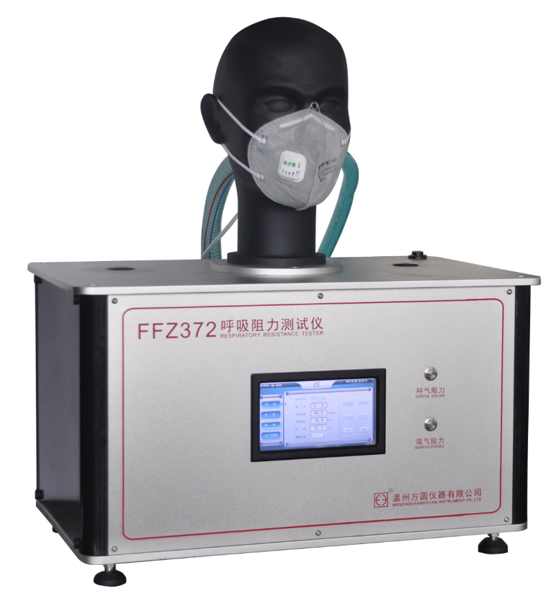 FFZ372呼吸阻力測試儀將被測試樣佩戴在匹配的試驗頭模上,保證試樣與試驗頭模的密合。在規定條件下模擬人呼吸狀態測出壓差臨界點,從而得到該試樣的吸氣阻力和呼氣阻力,以此來判斷該試樣佩戴的舒適性。
